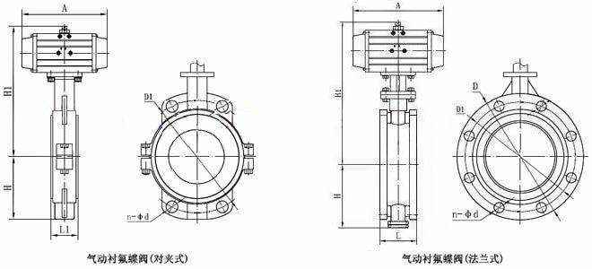气动衬氟蝶阀 主要外形尺寸