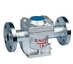 自由半浮球式蒸汽疏水阀只有一个半浮球式的球桶为活动部件,开口朝下,球桶即是启闭件,又是密封件。当装置刚启动时,管道内的空气和低温凝结水经过发射管进入疏水阀内,阀内的双金属片排空元件把球桶弹开,阀门开启,空气和低温凝结水迅速排出。当蒸汽进入球桶内,球桶产生向上浮力,同时阀内的温度升高,双金属片排空元件收缩,球捅漂向阀口,阀门关闭。当球桶内的蒸汽变成凝结水,球桶失去浮力往下沉,阀门开启,凝结水迅速排出。当蒸汽再进入球桶之内,阀门再关闭,间断和连续工作。由于阀座处于水封隔离,水汽分开,工作时无蒸汽泄漏。