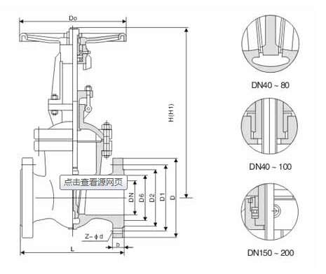 不锈钢法兰闸阀 主要外形尺寸