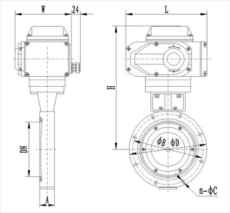 型号 | 通径(DN) | ΦD | ΦB | H | A | L | W | n-ΦC |